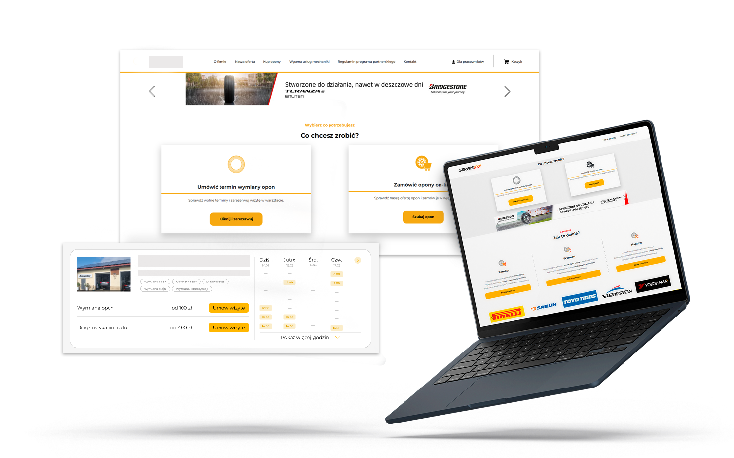 Przyłączając się do Serwis500, Twój warsztat dołącza do sieci współpracującej z uznanymi partnerami, takimi jak Latex, HurtOpony oraz Fleet Master. Z nami wzmocnisz prestiż, zwiększysz swoją wiarygodność i przyciągniesz więcej klientów. Pomożemy Ci rozwinąć Twój warsztat na jeszcze wyższym poziomie. Nie czekaj - postaw na współpracę z liderami rynku i wyróżnij się na tle konkurencji! Dzięki partnerstwu z Serwis500, Twój warsztat ma szansę wyróżnić się jako pierwszy wybór klientów poszukujących opon online.